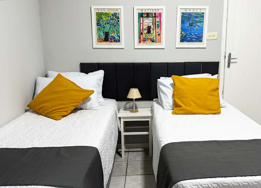 • queen size bed or 2 single beds • bathroom with shower • air condition and heater • flat tv • wi fi