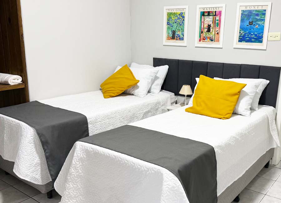 • queen size bed or 2 single beds • bathroom with shower • air condition and heater • flat tv • wi fi